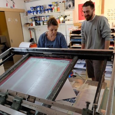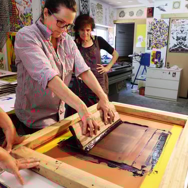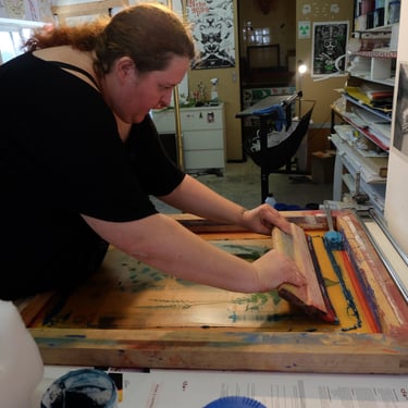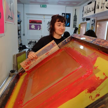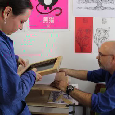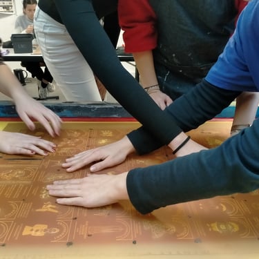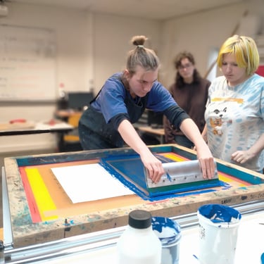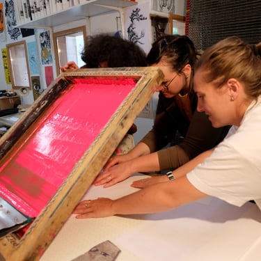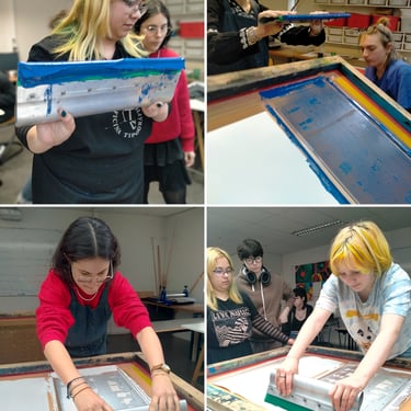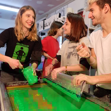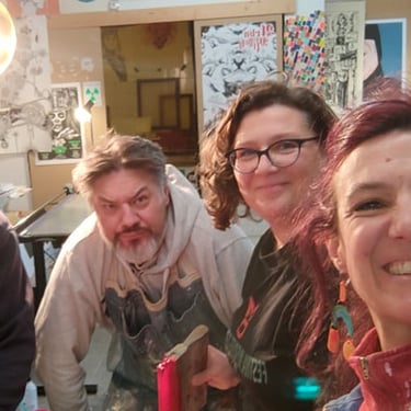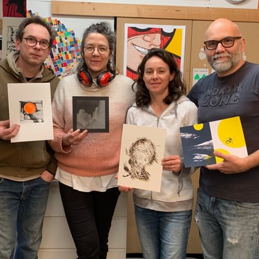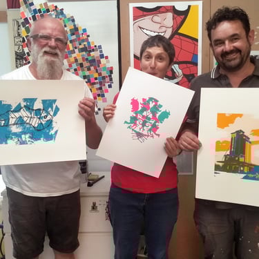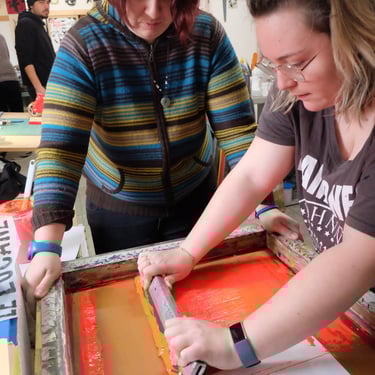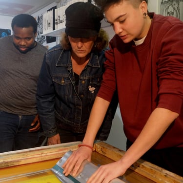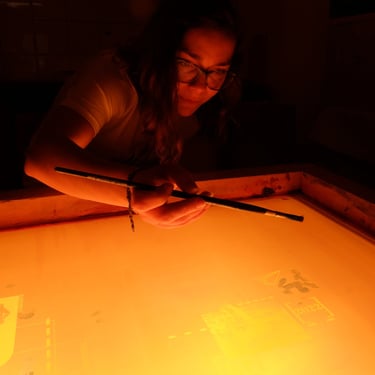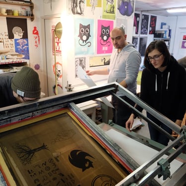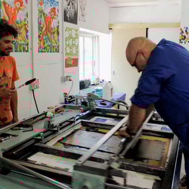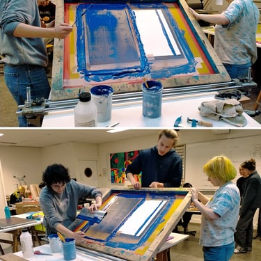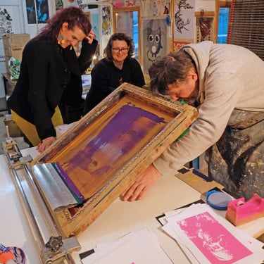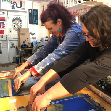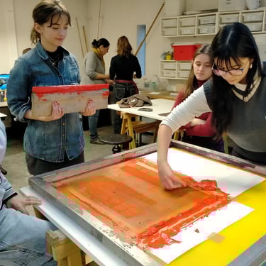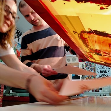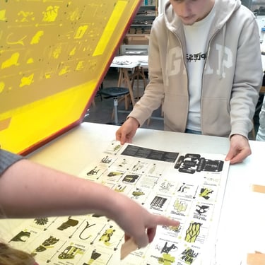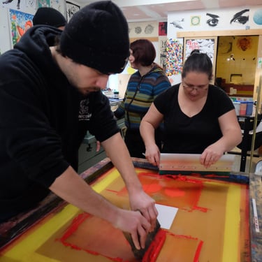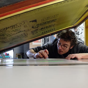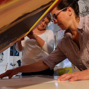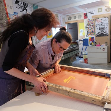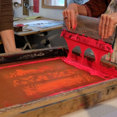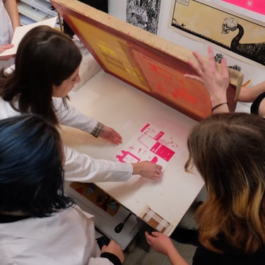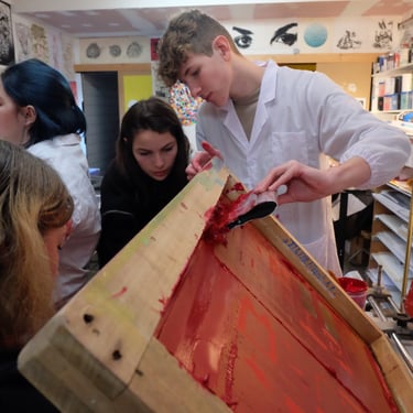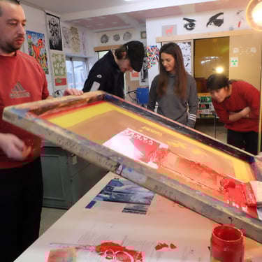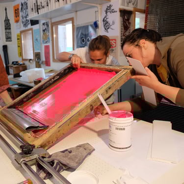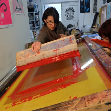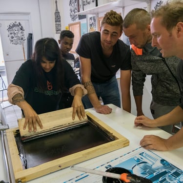 Je propose toute l'année des stages d'une journée (ou plus) destinés principalement aux artistes qui désirent imprimer leurs productions mais également à tous les curieux qui souhaitent découvrir cette technique. Les stages explorent toutes les étapes du procédé : Enduction des écrans, insolation, développement, calage, préparation des encres, tirage et dégravage des écrans.