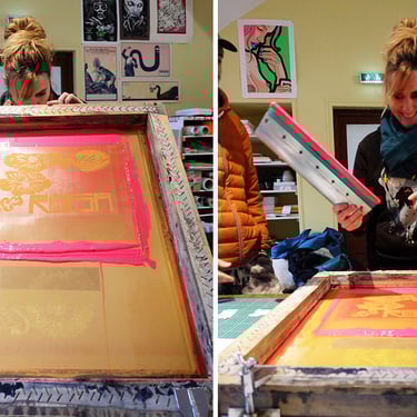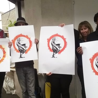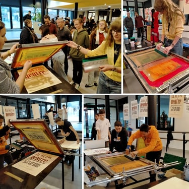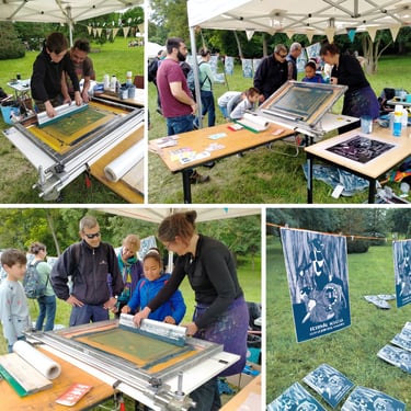 Vous venez avec votre papier pour une surface d'impression A4 environ et vous repartez avec une trentaine d'exemplaires de votre motif imprimé en 2 ou 3 couleurs en fonction du nombre de participants.